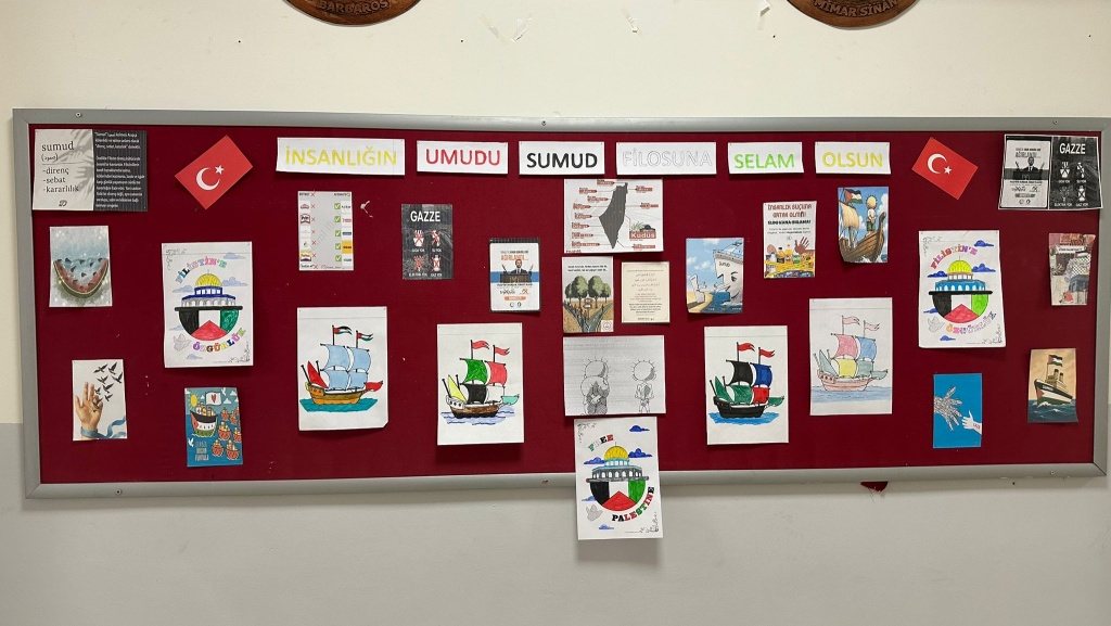 Okulumuz öğretmenlerinden Din Kültürü ve Ahlak Bilgisi Öğretmeni Büşra AK tarafından Gazze'deki zulme karşı duyarlılık ve farkındalık yaratmak amacıyla okulumuz öğrencileri ile hazırlamış oldukları okul panosu..Katkılarından dolayı okulumuz adına öğretmenimize ve öğrencilerimze teşekkürlerimizi sunarız.